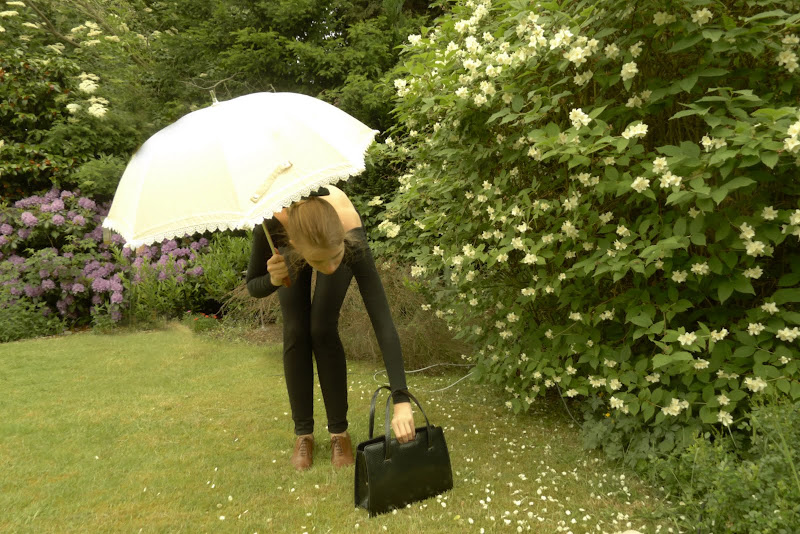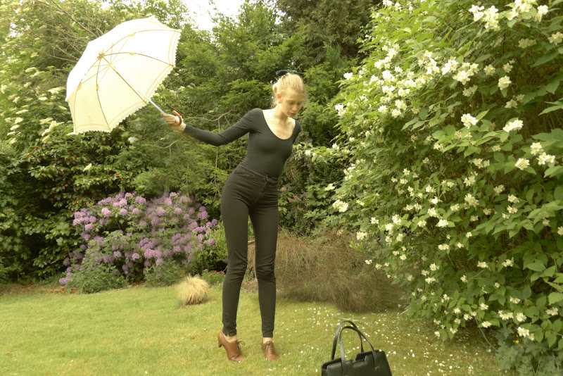pants, bodysuit & bow: american apparel - jacket & purse: vintage - boots: cecil