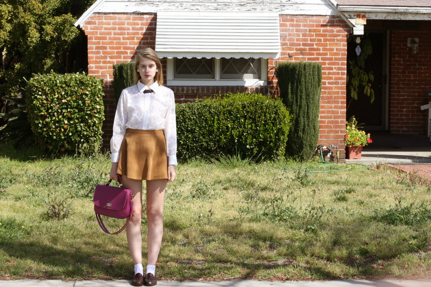 (skirt & socks american apparel - button-up & necklace vintage - satchel meyongdong market - loafers haruta)